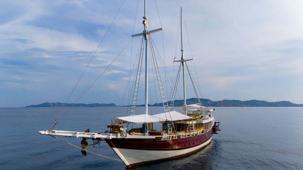 With an overall length of 31-meters (102-foot) the Emperor Raja Laut is a ‘schooner-style’ yacht accommodating only 12 guests. She sails Komodo, Raja Ampat, Alor & East Flores.