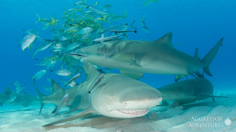 Tiger Beach (7 & 10 night)  …. loads of water time with tiger sharks, lemon sharks, nurse sharks and other occasional inquisitive visitors.  Please note that all shark action on the Aggressor trips is natural.  Aggressor does not chum for sharks.