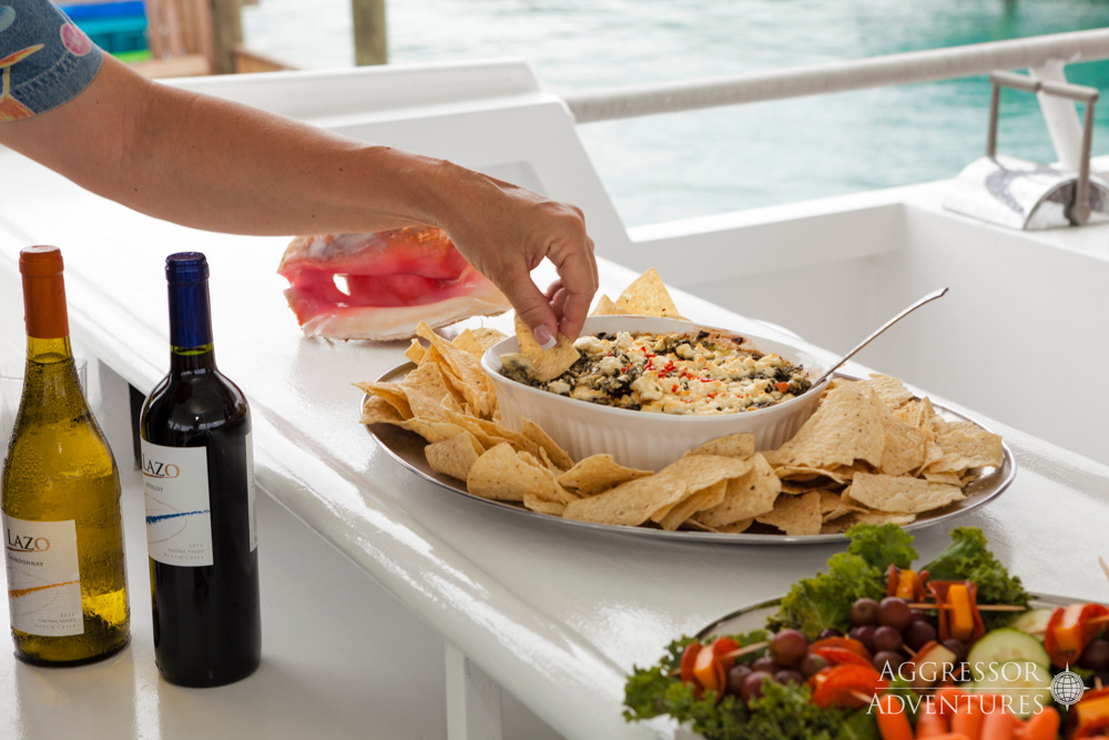 All meals include restaurant-style table side service and the menus include a combination of American cuisine, local dishes and bbq meals. Breakfast is cooked to order, lunches are buffet-style. You’ll also have are also fresh-baked post-dive snacks.