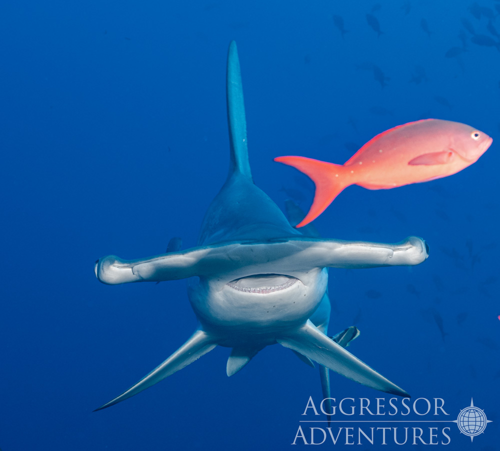 A 600’ long submerged mountain, the top of the mountain is 75’ from the surface. Schooling hammerheads, mantas and schooling fish. Possible sailfish or marlin.
