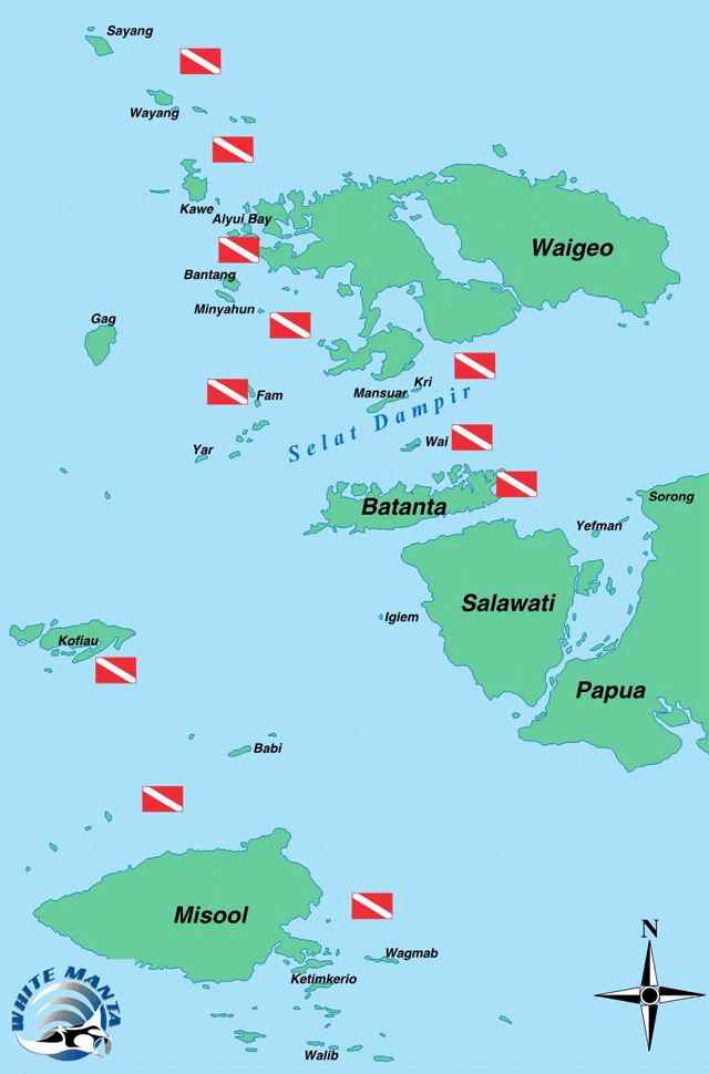 Raja Ampat – Indonesia’s shining underwater jewel, Raja Ampat has something of nearly everything a diver could want. You’ll dive channels, plateaus, walls & caves … and just plain mud, for the delight of “muck” diving. You’ll swim amongst great swirls of fish and feast your eyes on sponges & corals in scintillating colors. You’ll meet up close & personal, everything from pygmy seahorses to colossal manta rays.