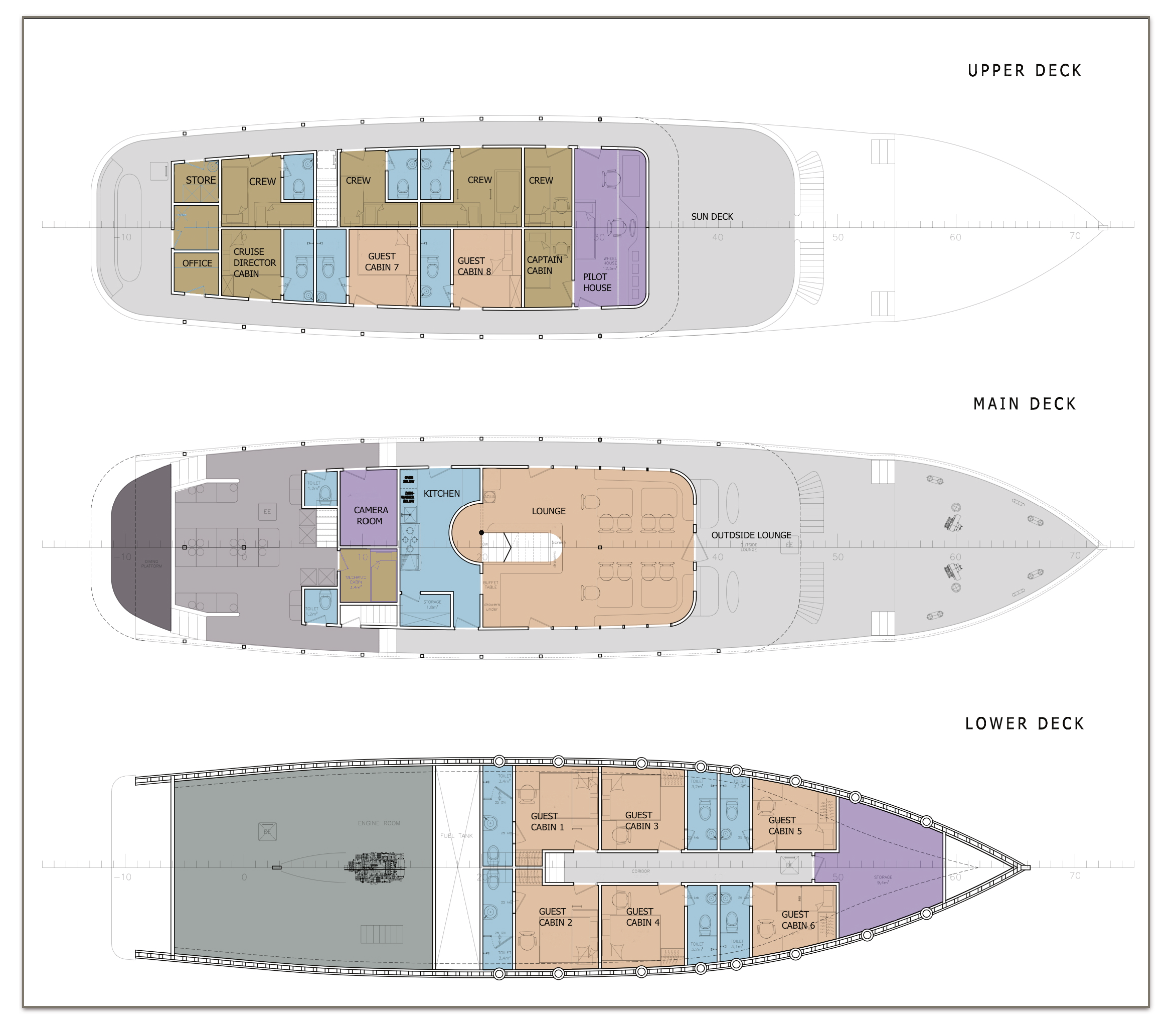 Crew members: 16 – 18 crew including 4 dive guides + 1 western cruise director/ dive instructor