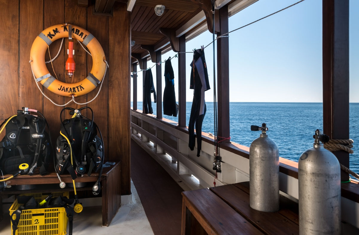 Wallacea Dive Cruises, which owns Ambai, was created in 2002 by a French-Indonesian couple, Suryani Mile and Jérôme Doucet, who remain the sole owners of the operation. Like many of the other Indonesian liveaboards, this is a passion and personal lifestyle choice. Suryani and Jérôme also devoted to environmental protection projects. Ambai was designed by Jérôme to have a comfortable, relaxed & friendly feeling. There are normally 16 to 18 crew on a boat of 16 divers. And, for our French clients, it’s nice to note that you’ll find French-speaking crew members.