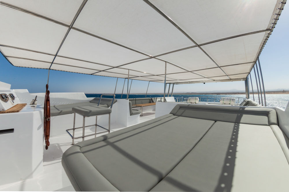She features spacious sun decks for relaxing as well as full dive facilities, including free Nitrox, dive platforms, and storage for personal gear. Comfortable lounges, a dining area, and attentive service make every moment on board enjoyable. The MY Blue Seas sails year-round to classic Red Sea routes — from northern wrecks to the marine parks of Brothers, Daedalus, Rocky, and Zabargad — offering unforgettable diving experiences and stunning scenery along the way.