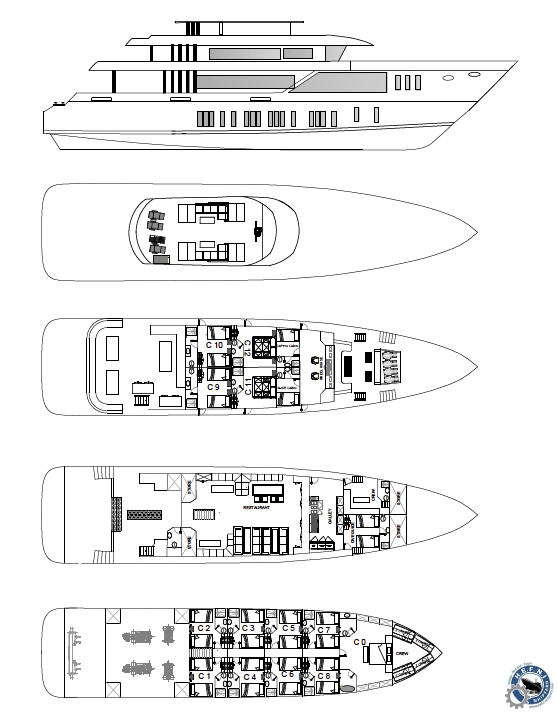 Deck & cabin layout, the yacht specifications, equipment & safety features